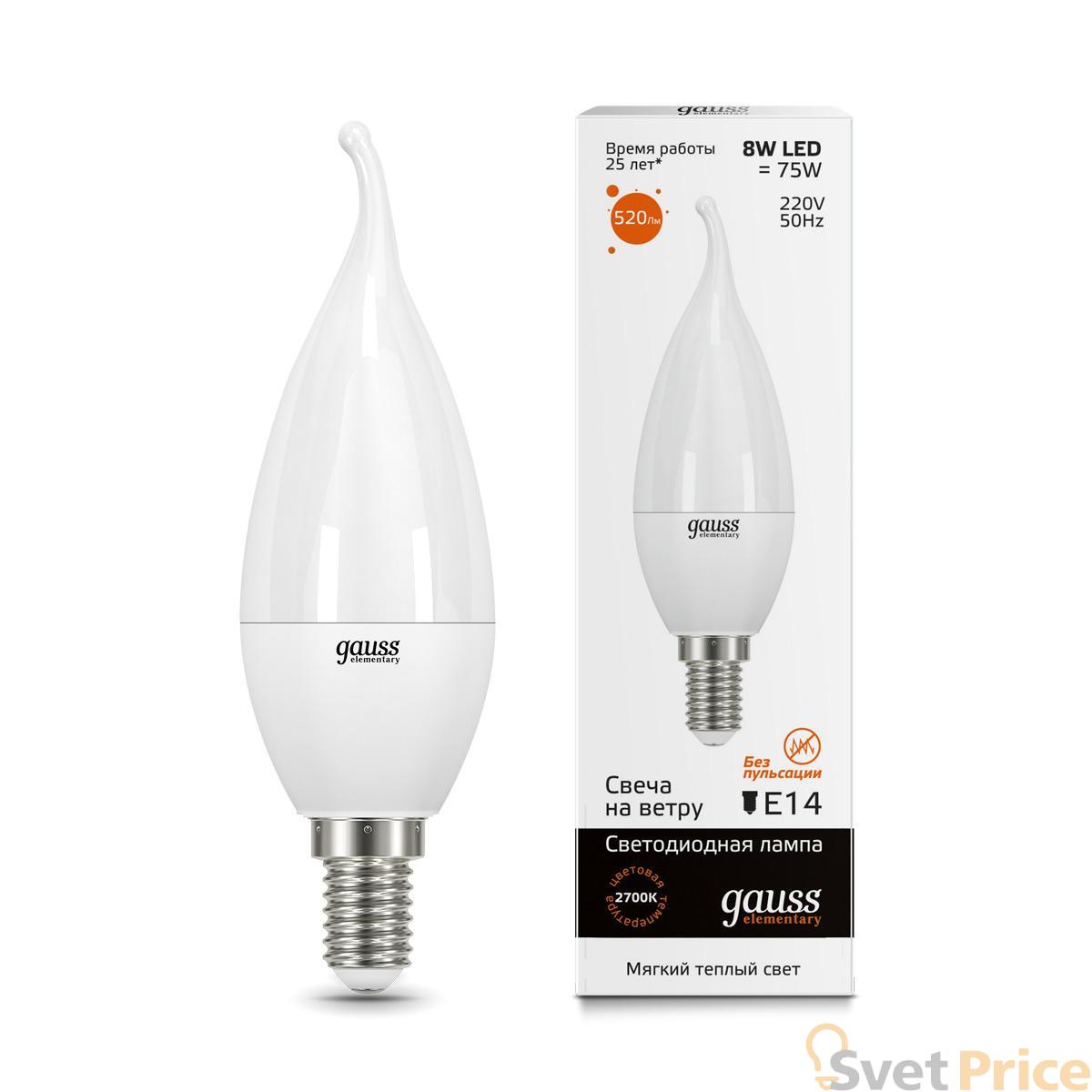 Лампа светодиодная E14 8W 2700K свеча на ветру матовая 34118