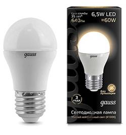 Лампа светодиодная E27 6.5W 2700K шар матовый 105102107