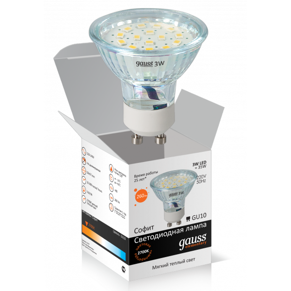 Лампа светодиодная софитная GU10 3W 2700К полусфера прозрачная EB12613