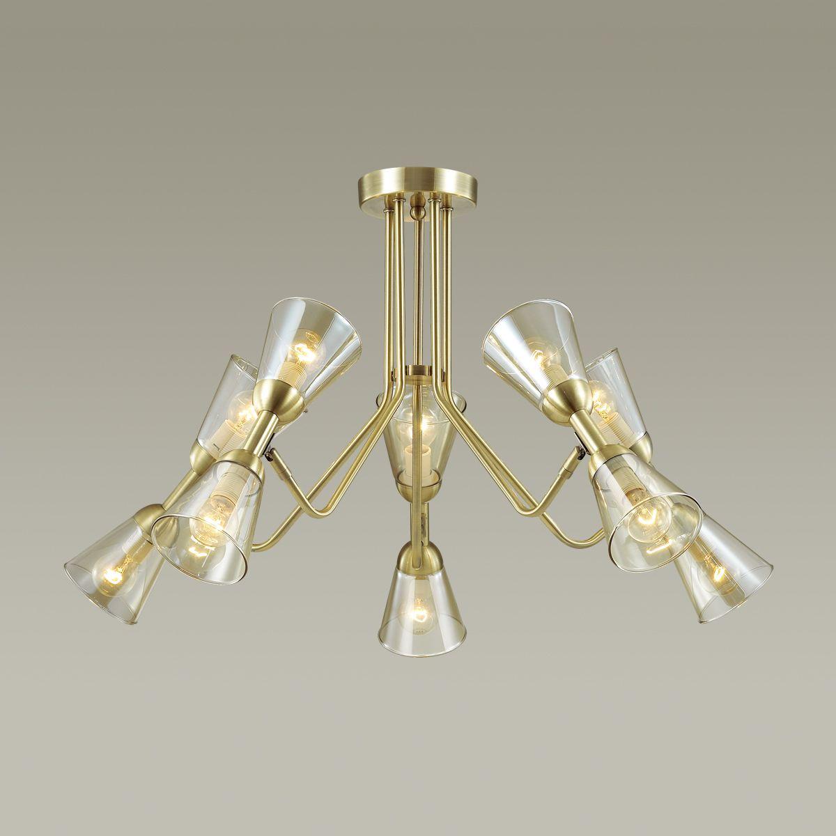 Цвет Янтарный Виды материалов Стеклянные Цвет арматуры Латунь Материал арматуры Металл Материал плафонов Стекло Форма плафона Конусный Общая информация