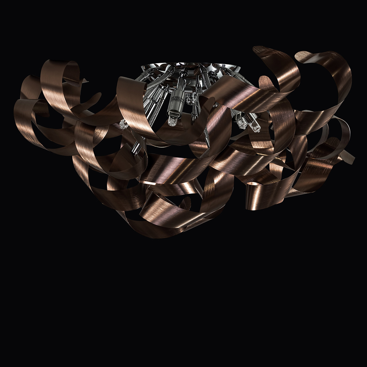 Потолочная люстра Lightstar из коллекции Turbio производства Италия. Люстра L754068 имеет цоколь G9, в конструкции используются металлические виды материалов, металлическая арматура цвета матового никеля и 6 коричневых плафона из материала металл.