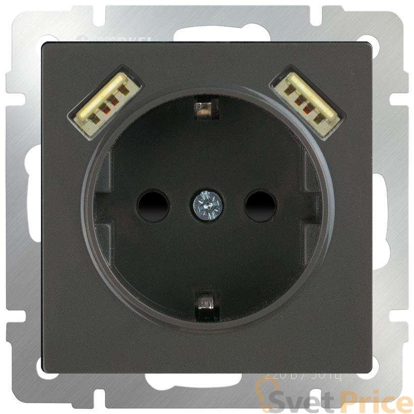 Розетка с заземлением, шторками и USBх2 Werkel WL07-SKGS-USBx2-IP20 серо-коричневый 4690389093999