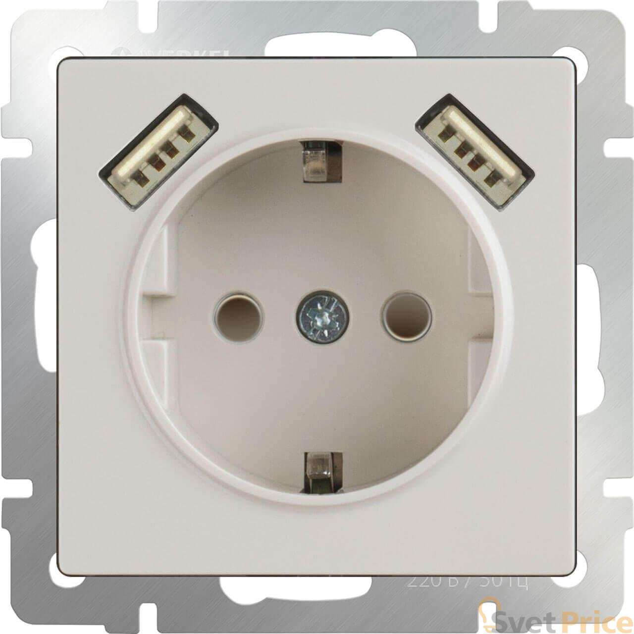 Розетка с заземлением, шторками и USBx2 слоновая кость WL03-SKGS-USBx2-IP20 4690389073205