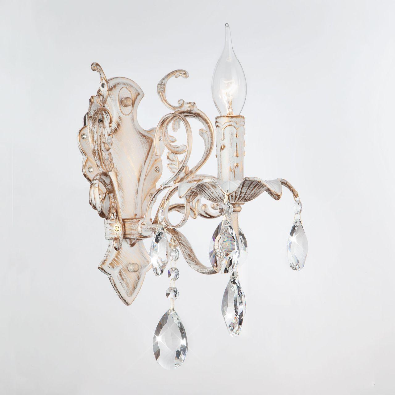 Место установки На стену Интерьер Для спальни Страна Россия Артикул 3113/1 белый с золотом/прозрачный хрусталь Strotskis Коллекция Kiva Цвет и материал
