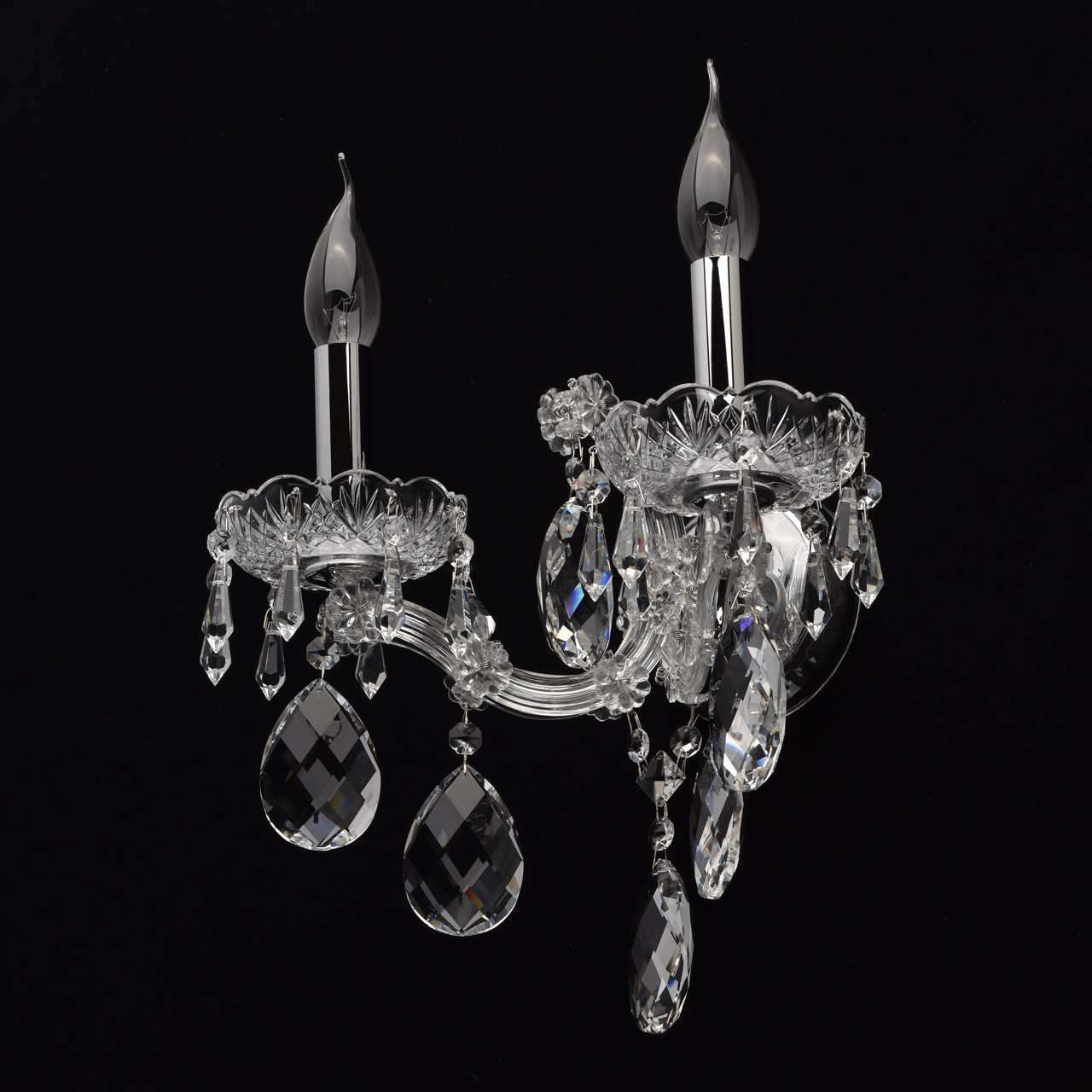 Цвет Хром Виды материалов Хрустальные Цвет арматуры Хром Материал арматуры Металл Форма плафона Без плафона Лампочки