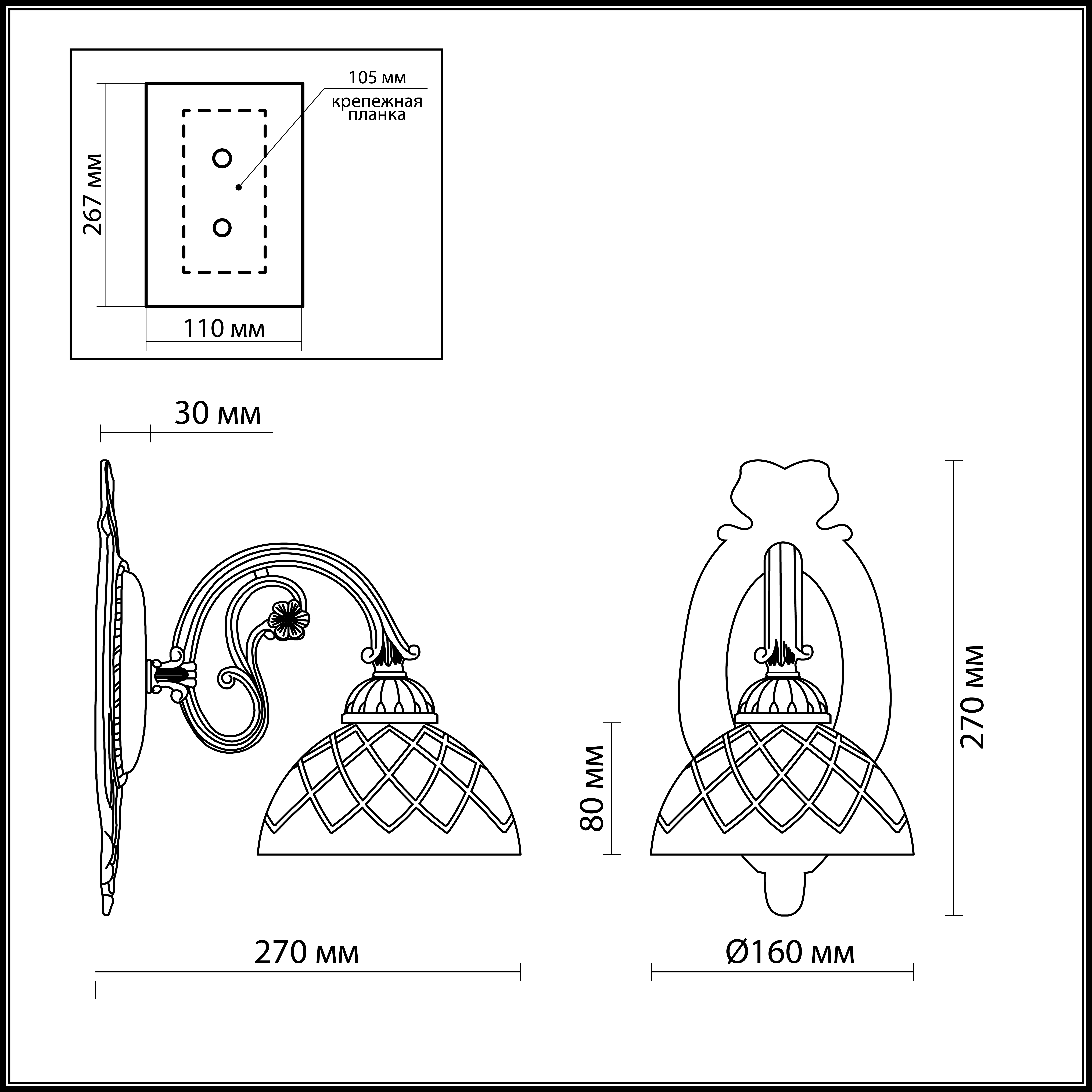 Цвет арматуры Бронза Материал арматуры Металл Материал плафонов Стекло Лампочки