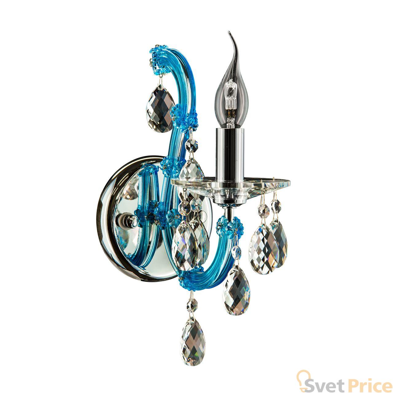 Цвет Голубой Виды материалов Хрустальные Цвет арматуры Хром Материал арматуры Металл Форма плафона Без плафона Лампочки