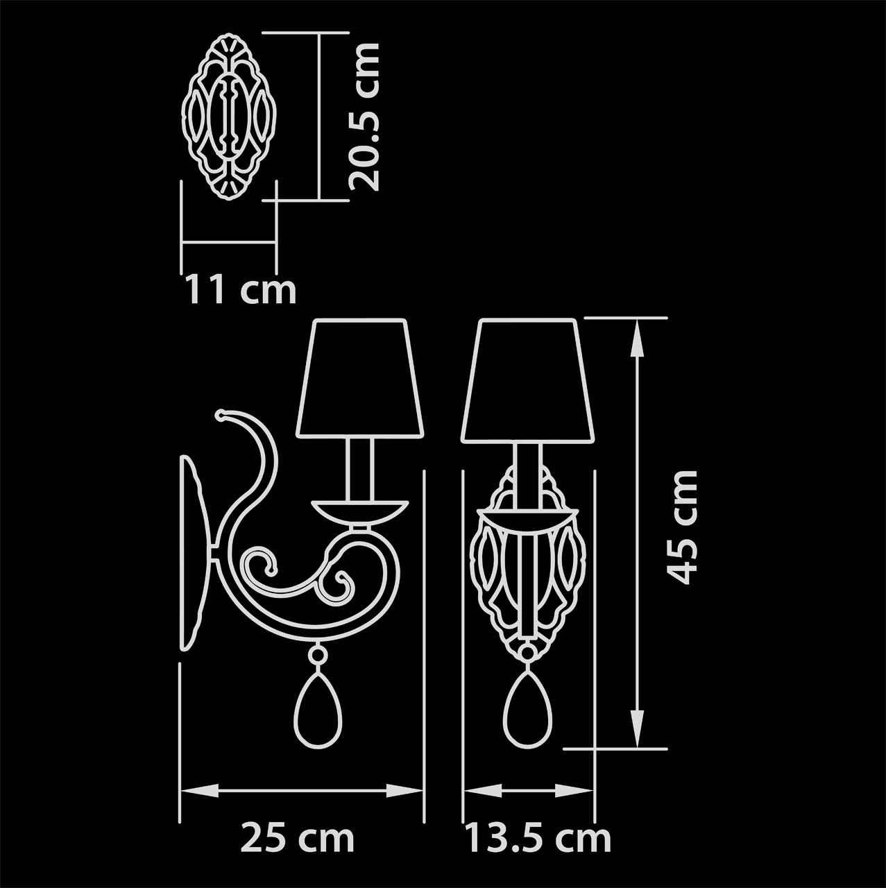 Высота 450 Ширина 135 Лампочки