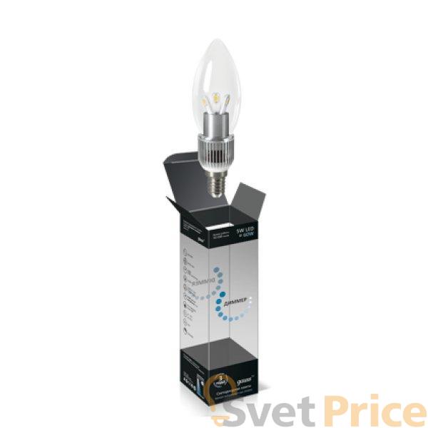 Лампа светодиодная диммируемая E14 5W 4100K свеча прозрачная HA103201205-D