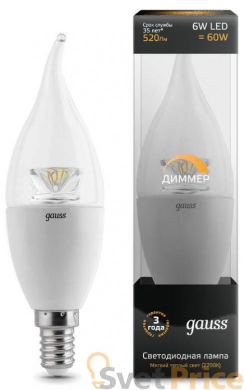 Лампа светодиодная диммируемая E14 6W 4100К свеча на ветру прозрачная 104201206-D