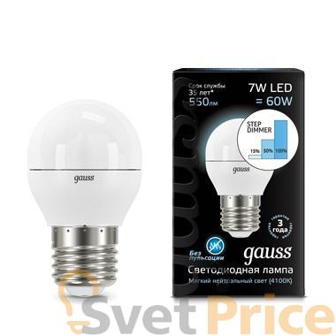 Лампа светодиодная диммируемая E27 7W 4100K шар матовый 105102207-S
