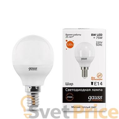 Лампа светодиодная E14 8W 2700K шар матовый 53118