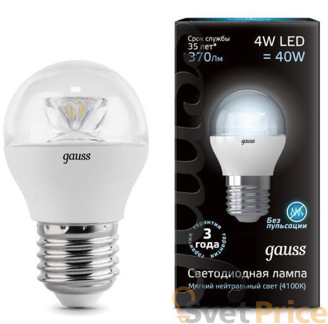 Лампа светодиодная E27 4W 4100К шар прозрачный 105202204