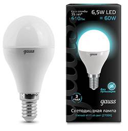 Лампа светодиодная E14 6.5W 4100K шар матовый 105101207