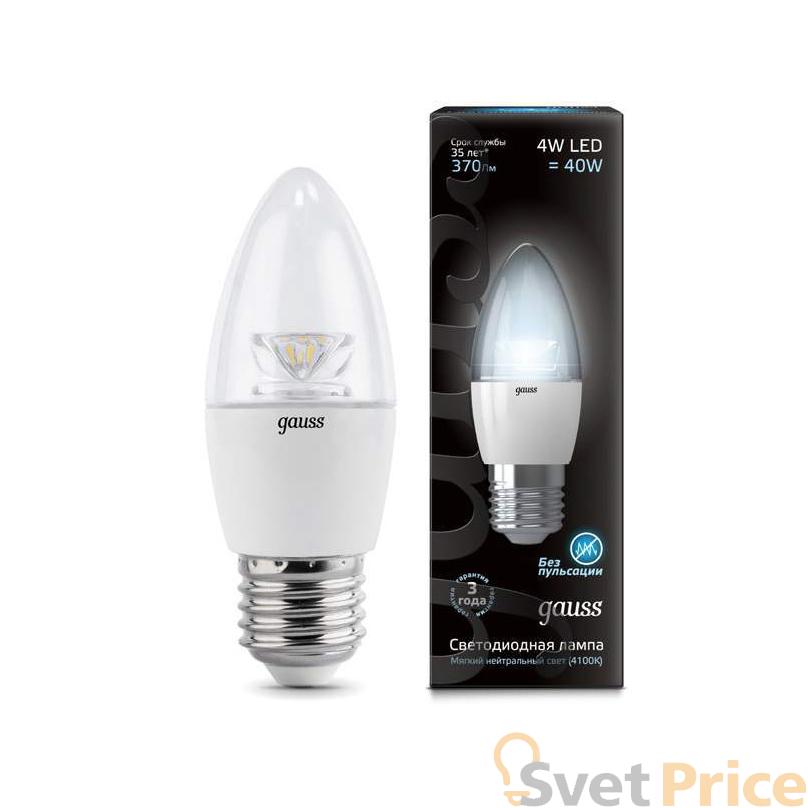 Лампа светодиодная E27 4W 4100К свеча прозрачная 103202204