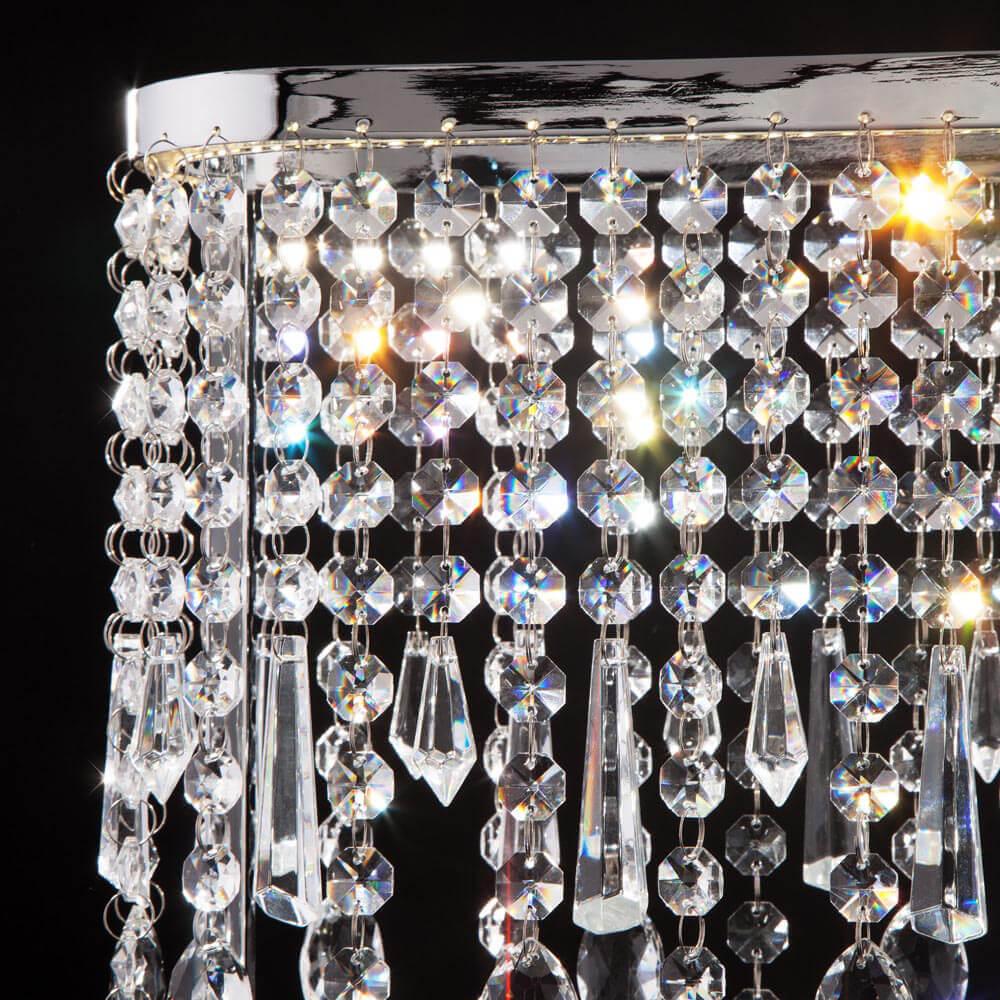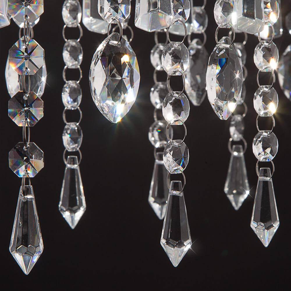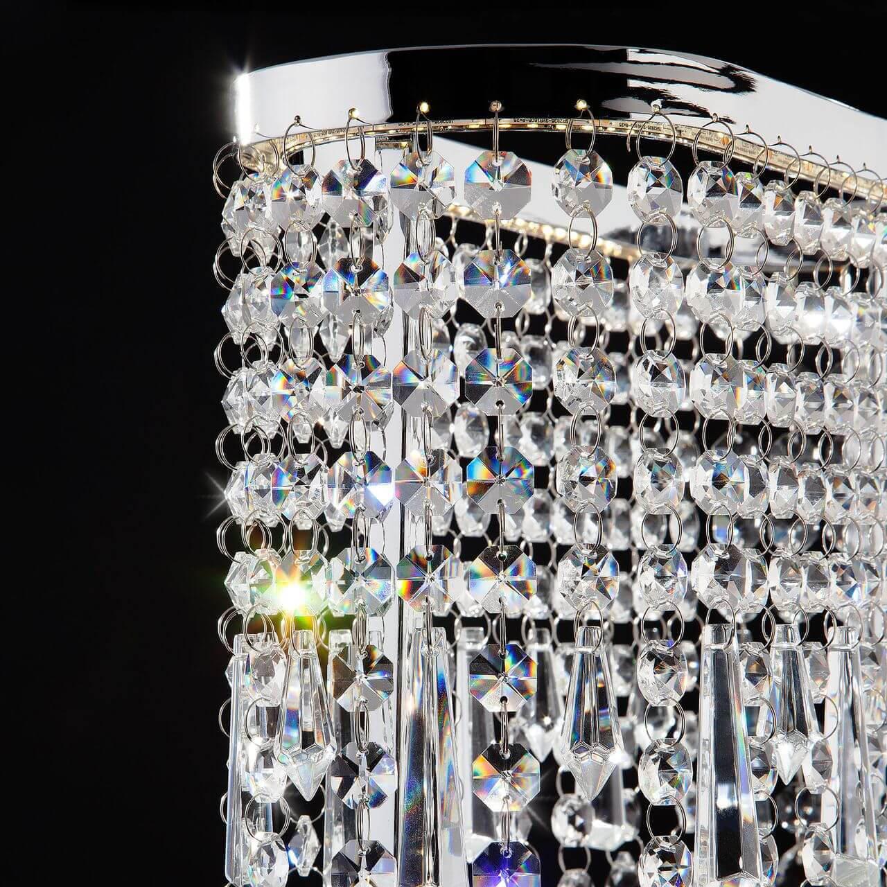 Цвет Хром Виды материалов Хрустальные Цвет арматуры Хром Материал арматуры Металл Материал плафонов Хрусталь Форма плафона Декоративный Общая информация