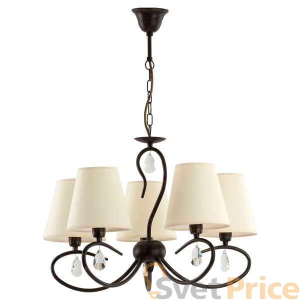 Подвесная люстра Alfa из коллекции Bali Premium производства Польша. Люстра 11635 имеет цоколь E14, в конструкции используются текстильные виды материалов, металлическая арматура цвета венге с патиной и 5 бежевых плафона из материала ткань.
