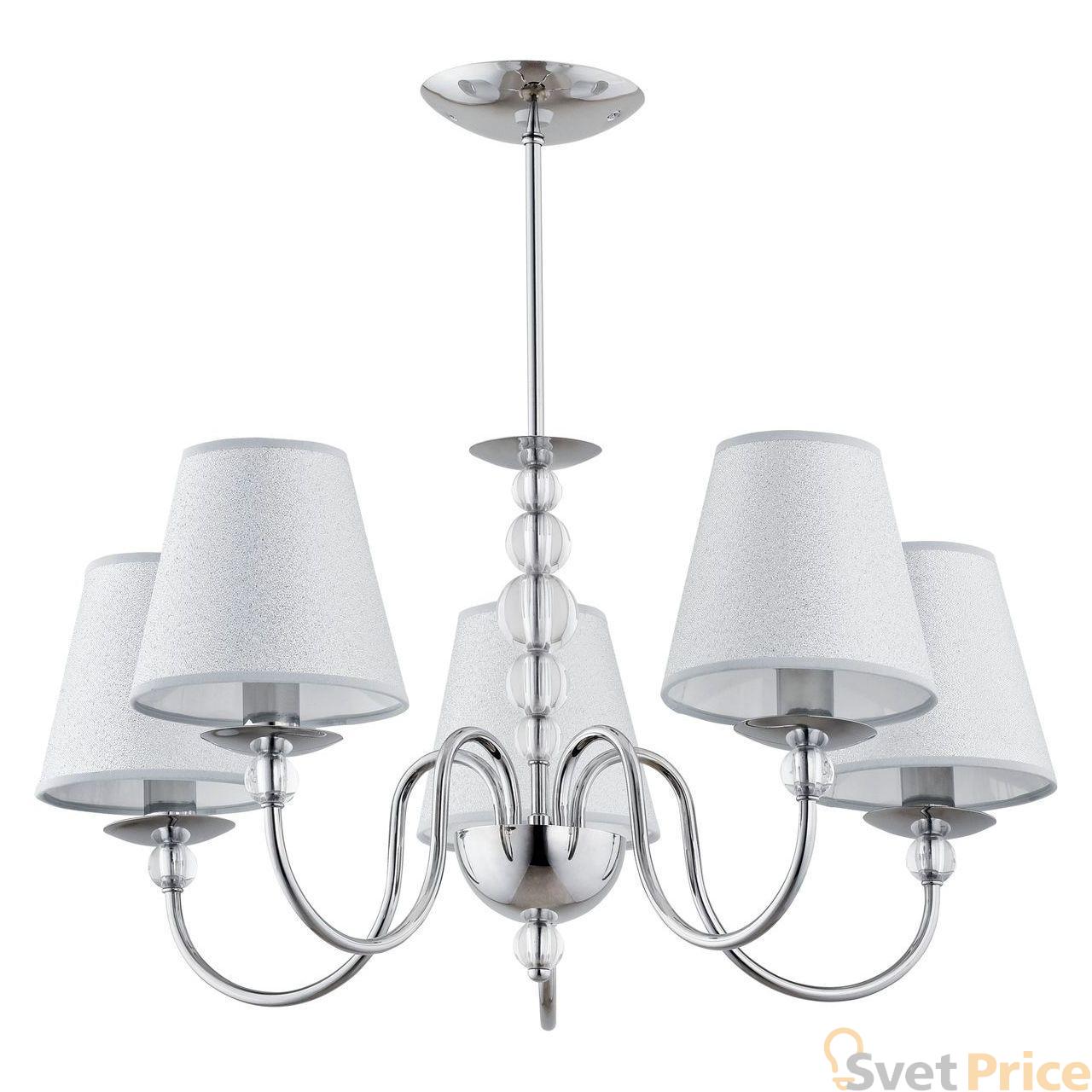 Подвесная люстра Alfa из коллекции Emma производства Польша. Люстра 21605 имеет цоколь E14, в конструкции используются текстильные виды материалов, металлическая арматура цвета хром и 5 серых плафона из материала ткань.