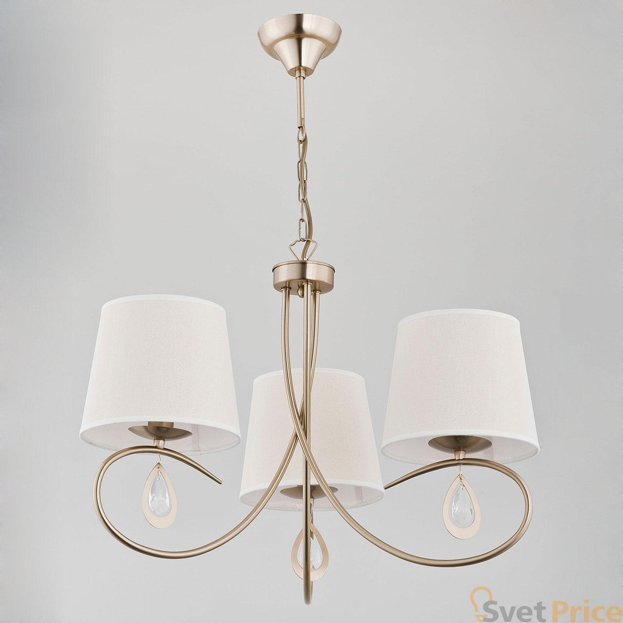 Подвесная люстра Alfa из коллекции Izyda производства Польша. Люстра 22053 имеет цоколь E14, в конструкции используются текстильные виды материалов, металлическая арматура золотого цвета и 3 бежевых плафона из материала ткань.