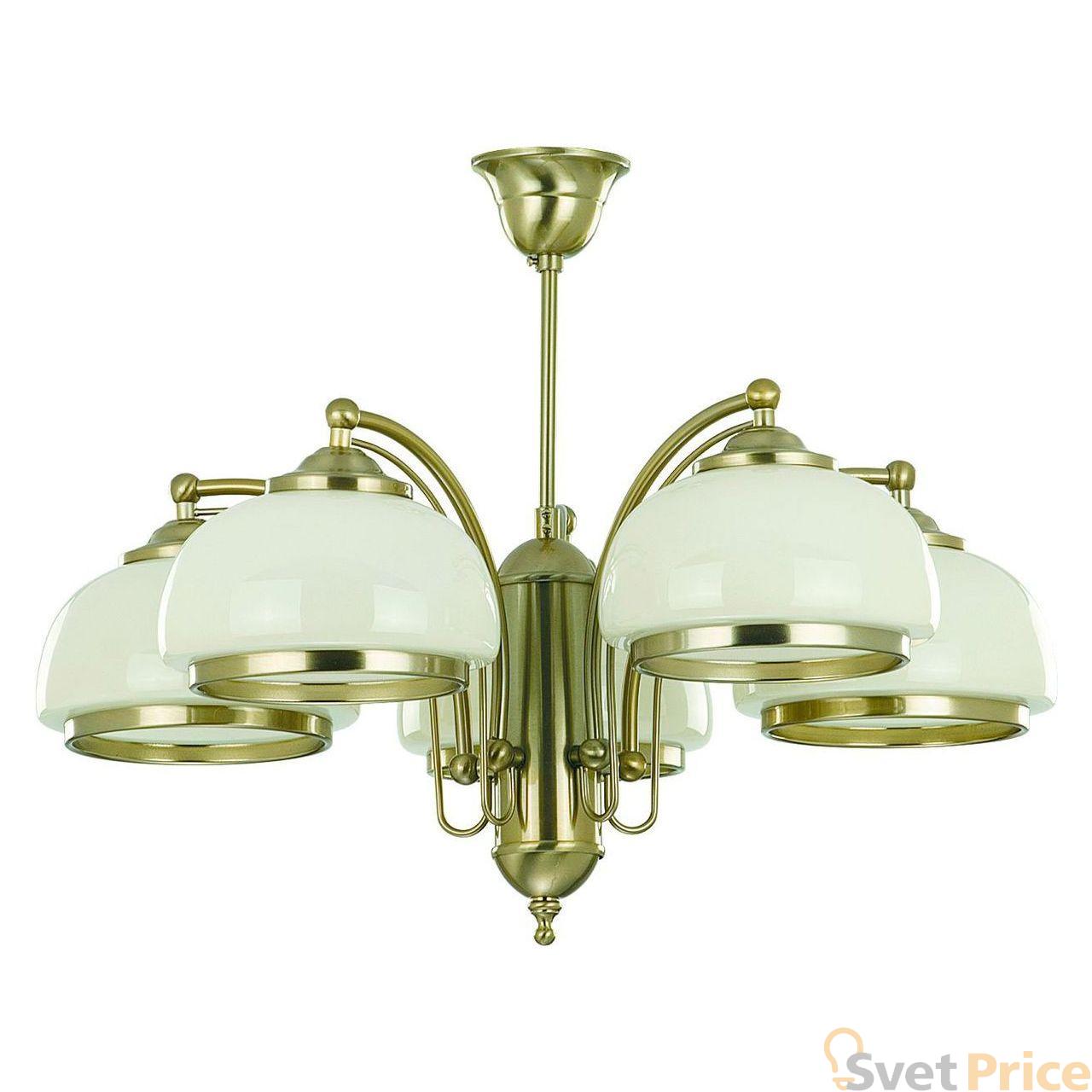 Подвесная люстра Alfa из коллекции Lord производства Польша. Люстра 10445 имеет цоколь E27, в конструкции используются стеклянные виды материалов, металлическая арматура золотого цвета и 5 кремовых плафона из материала стекло.