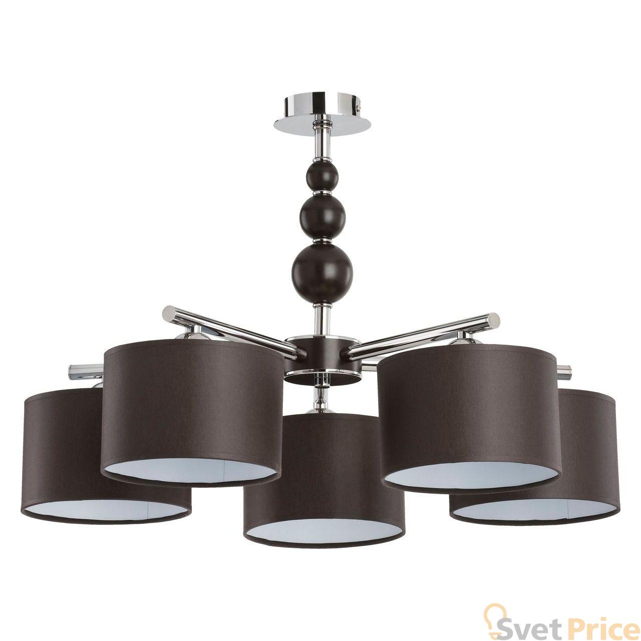 Подвесная люстра Alfa из коллекции Pamela производства Польша. Люстра 18105 имеет цоколь E14, в конструкции используются текстильные виды материалов, металлическая арматура цвета хром и 5 коричневых плафона из материала ткань.