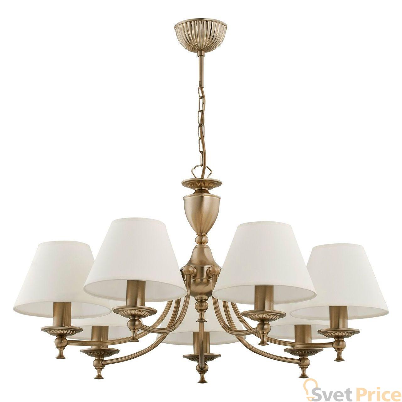 Подвесная люстра Alfa из коллекции Sofia производства Польша. Люстра 18347 имеет цоколь E14, в конструкции используются текстильные виды материалов, металлическая арматура бронзового цвета и 7 кремовых плафона из материала ткань.