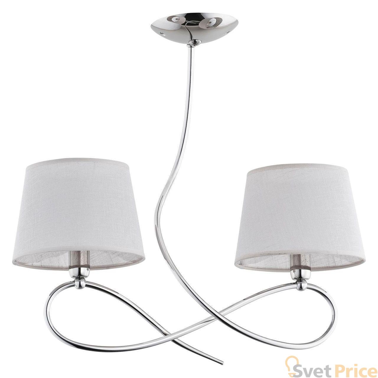 Подвесная люстра Alfa из коллекции Venezia производства Польша. Люстра 20452 имеет цоколь E14, в конструкции используются текстильные виды материалов, металлическая арматура цвета хром и 2 серых плафона из материала ткань.