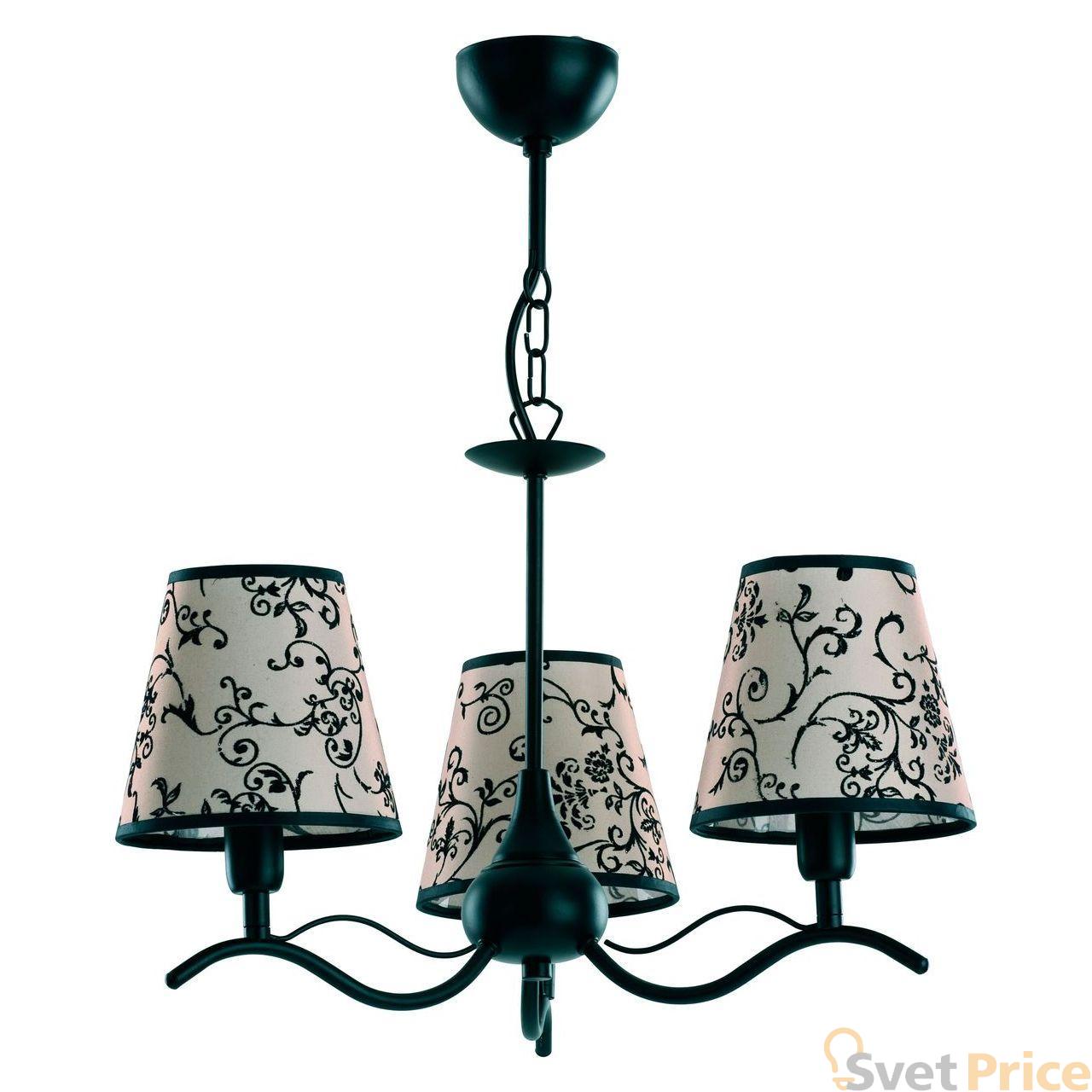 Подвесная люстра Alfa из коллекции Wiktoria производства Польша. Люстра 16843 имеет цоколь E14, в конструкции используются текстильные виды материалов, металлическая арматура черного цвета и 3 кремовых плафона из материала ткань.