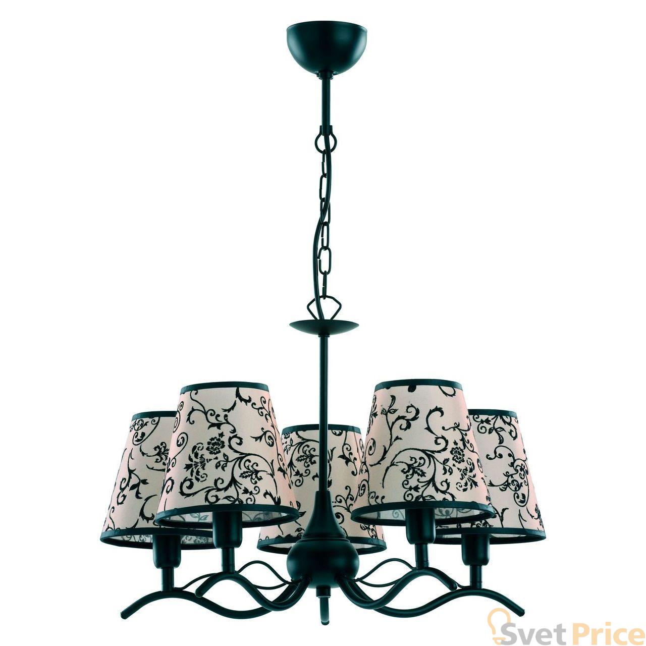 Подвесная люстра Alfa из коллекции Wiktoria производства Польша. Люстра 16845 имеет цоколь E14, в конструкции используются текстильные виды материалов, металлическая арматура черного цвета и 5 кремовых плафона из материала ткань.
