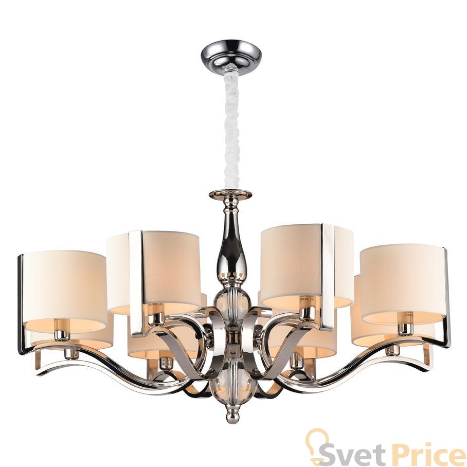 Подвесная люстра Newport из коллекции 31300 производства США. Люстра 31308/C имеет цоколь E14, в конструкции используются текстильные виды материалов, металлическая арматура цвета матового никеля и 8 бежевых плафона из материала ткань.