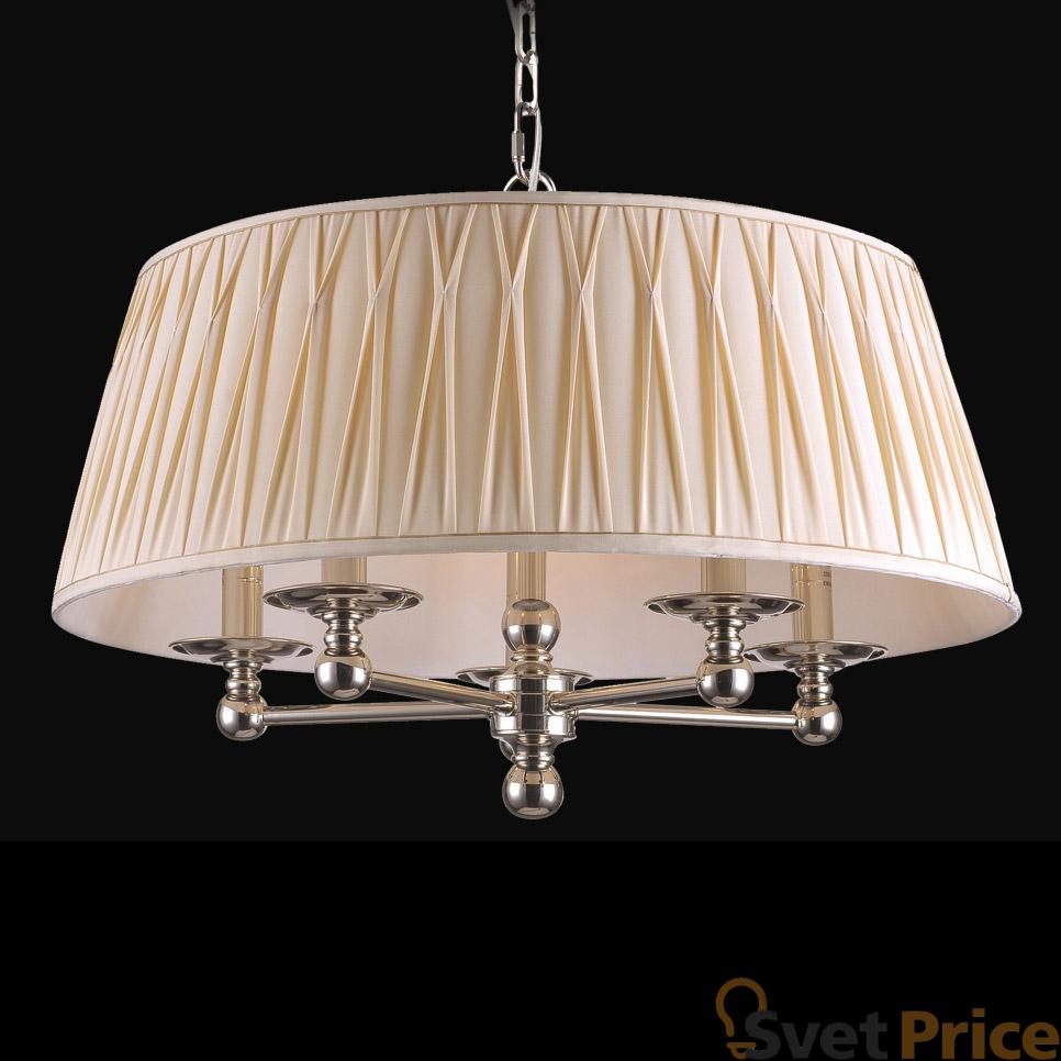 Подвесная люстра Newport из коллекции 31300 производства США. Люстра 31505/C имеет цоколь E14, в конструкции используются текстильные виды материалов, металлическая арматура цвета матового никеля и 5 бежевых плафона из материала ткань.