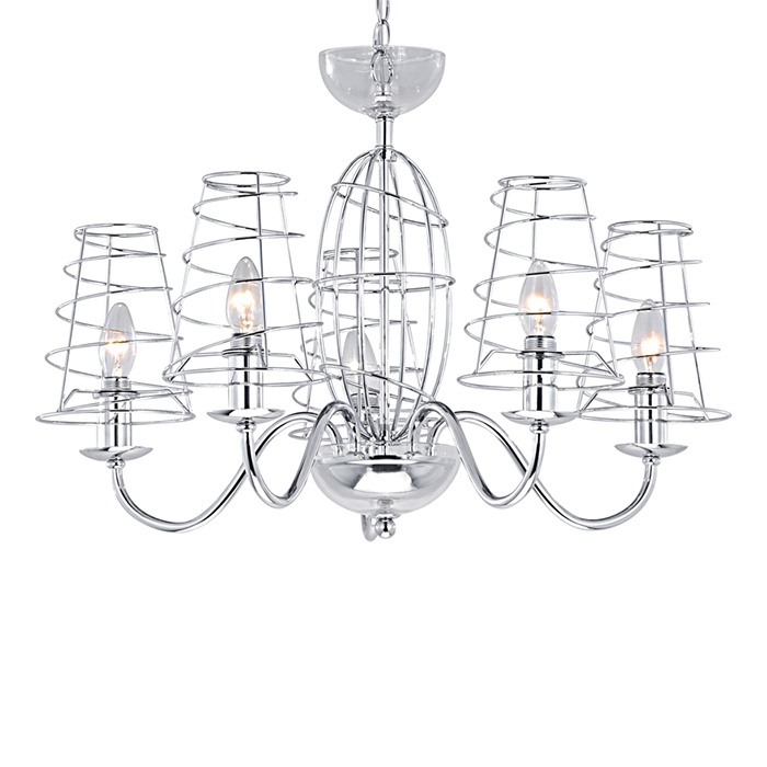 Подвесная люстра Arte Lamp из коллекции Cage производства Италия. Люстра A4320LM-5CC имеет цоколь E14, в конструкции используются металлические виды материалов, металлическая арматура цвета хром и 5 хромированных плафона из материала металл.
