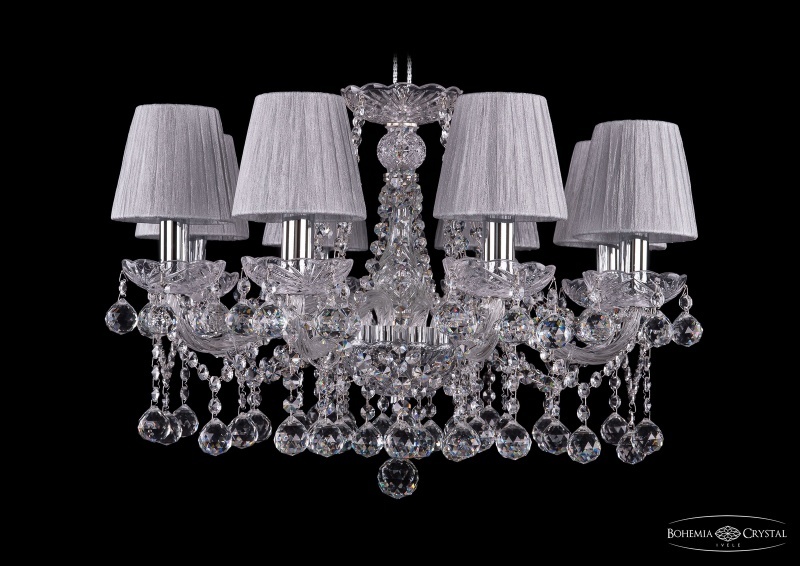 Подвесная люстра Bohemia ivele из коллекции 1413, страна производства Чехия. Люстра 1413/8/200/Ni/Balls/SH6 в стиле арт-деко имеет цоколь E14, конструкцией предусмотрена арматура цвета хром и 8 ламп.