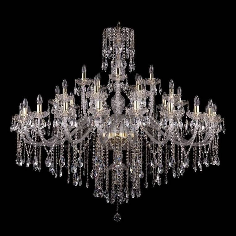 Большая люстра Bohemia ivele из коллекции 1415, страна производства Чехия. Люстра 1415/20+10+5/530/G в стиле классика имеет цоколь E14, конструкцией предусмотрена арматура золотого цвета и 35 ламп.