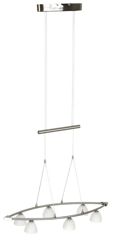 Подвесная люстра Brilliant из коллекции Los Angeles производства Германия. Люстра G72269/13 имеет цоколь G4, в конструкции используются металлические виды материалов, металлическая арматура цвета хром и 6 белых плафона из материала стекло.