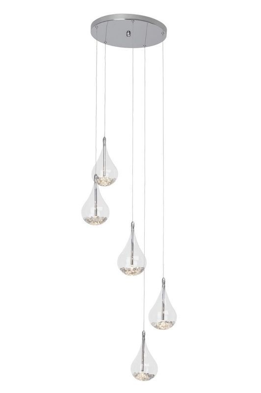 Подвесная люстра Brilliant из коллекции Maira производства Германия. Люстра G14773/15 имеет цоколь G4, в конструкции используются стеклянные виды материалов, металлическая арматура цвета хром и 5 прозрачных плафона из материала стекло.