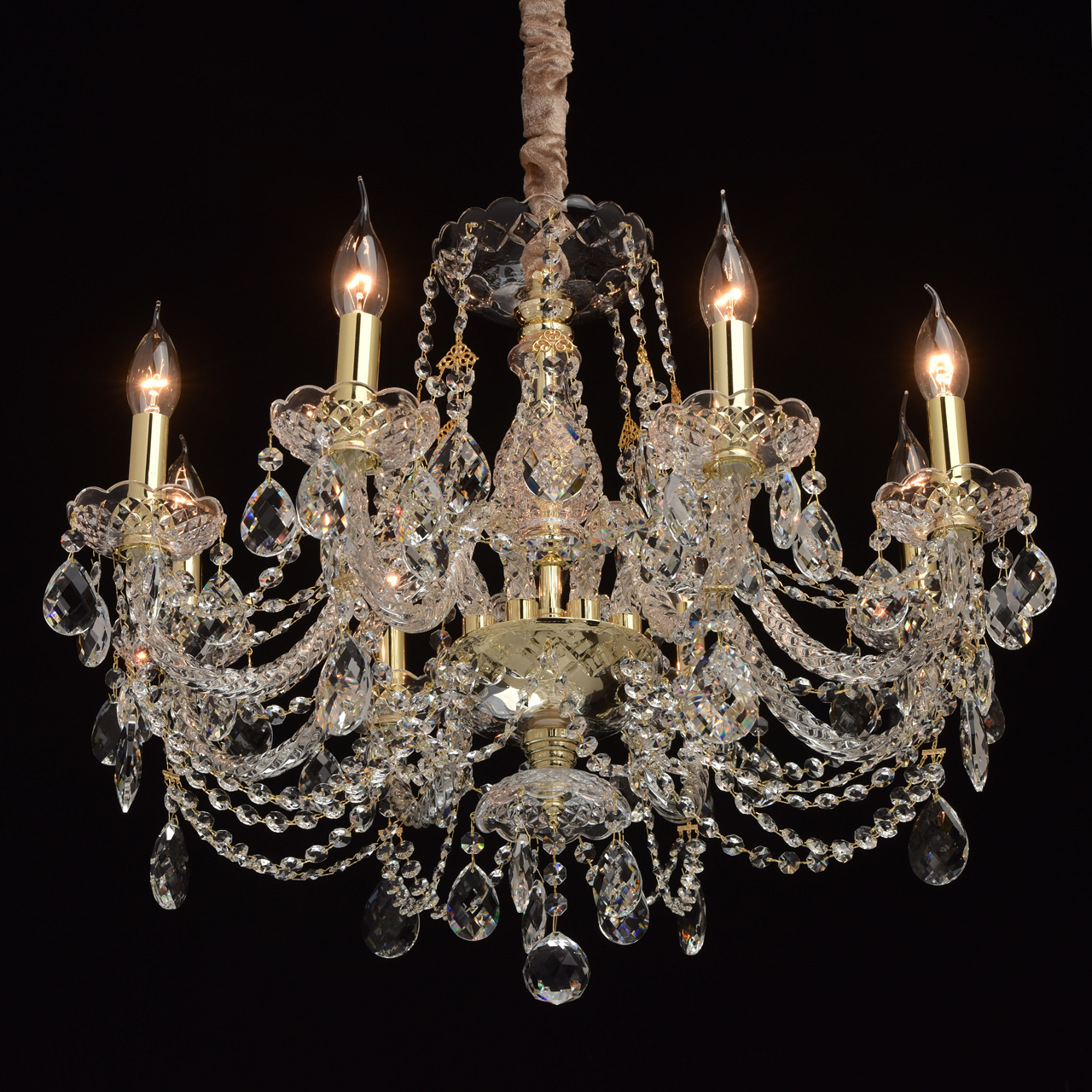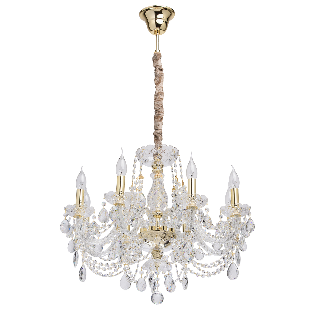Цвет Золотой Виды материалов Хрустальные Цвет арматуры Золото Материал арматуры Металл Форма плафона Без плафона Лампочки
