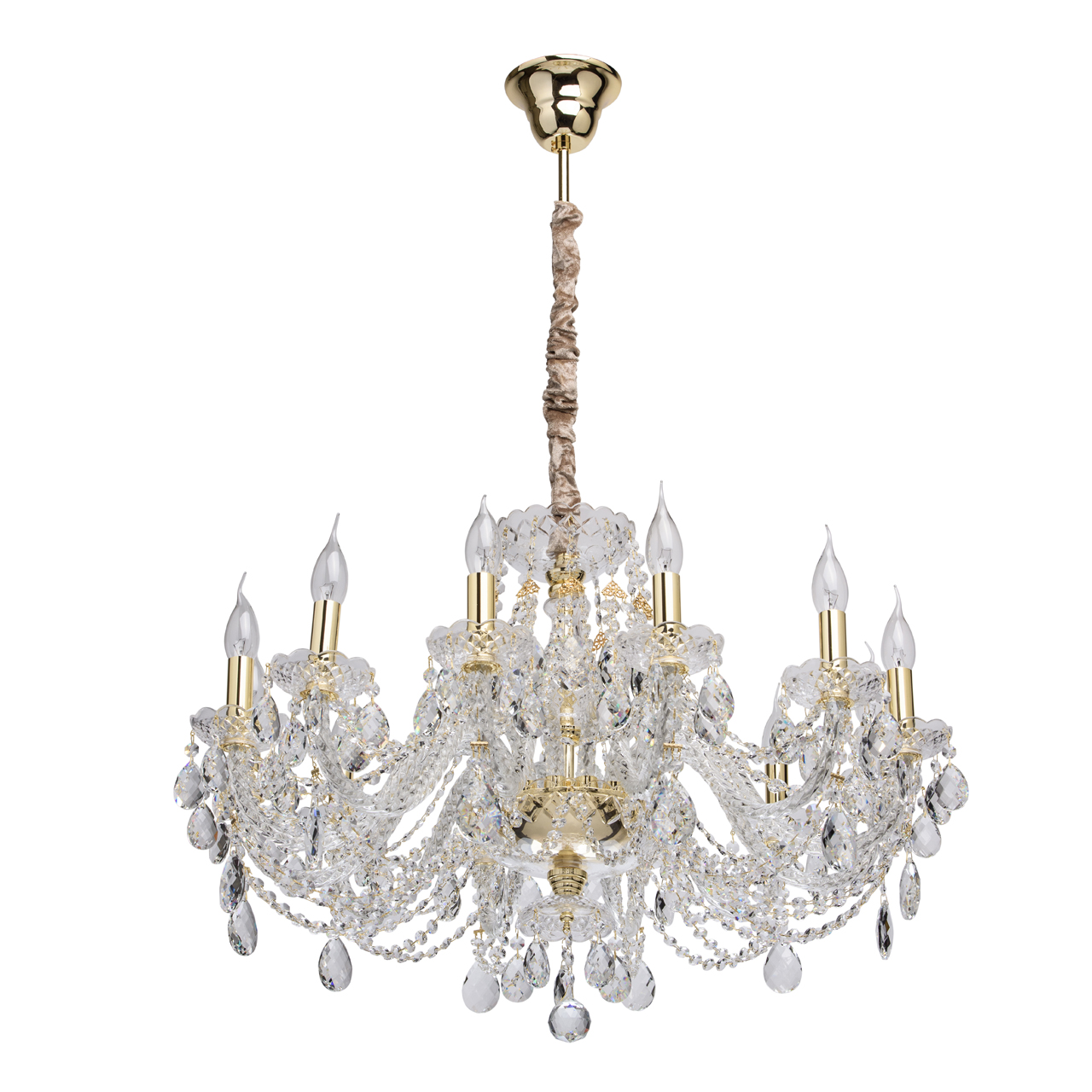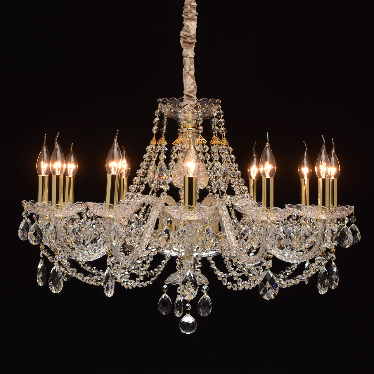 Хрустальная люстра CHIARO из коллекции Каролина 14, страна производства Германия. Люстра 367015212 в стиле классика имеет цоколь E14, в конструкции используются хрустальные виды материалов, металлическая арматура золотого цвета, количество ламп 12. Рекомендовано использование для гостиной.