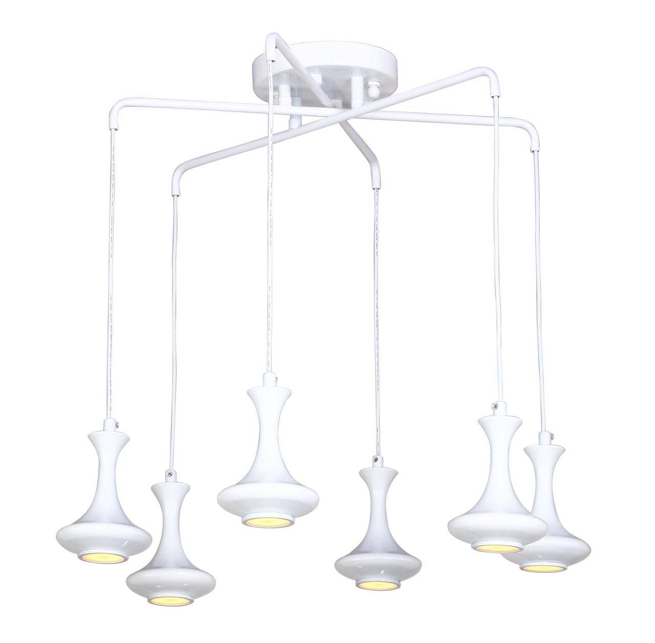 Подвесная люстра Favourite из коллекции Leo производства Германия. Люстра 1722-6P имеет цоколь LED, в конструкции используются металлические виды материалов, металлическая арматура белого цвета и 6 белых плафона из материала металл.