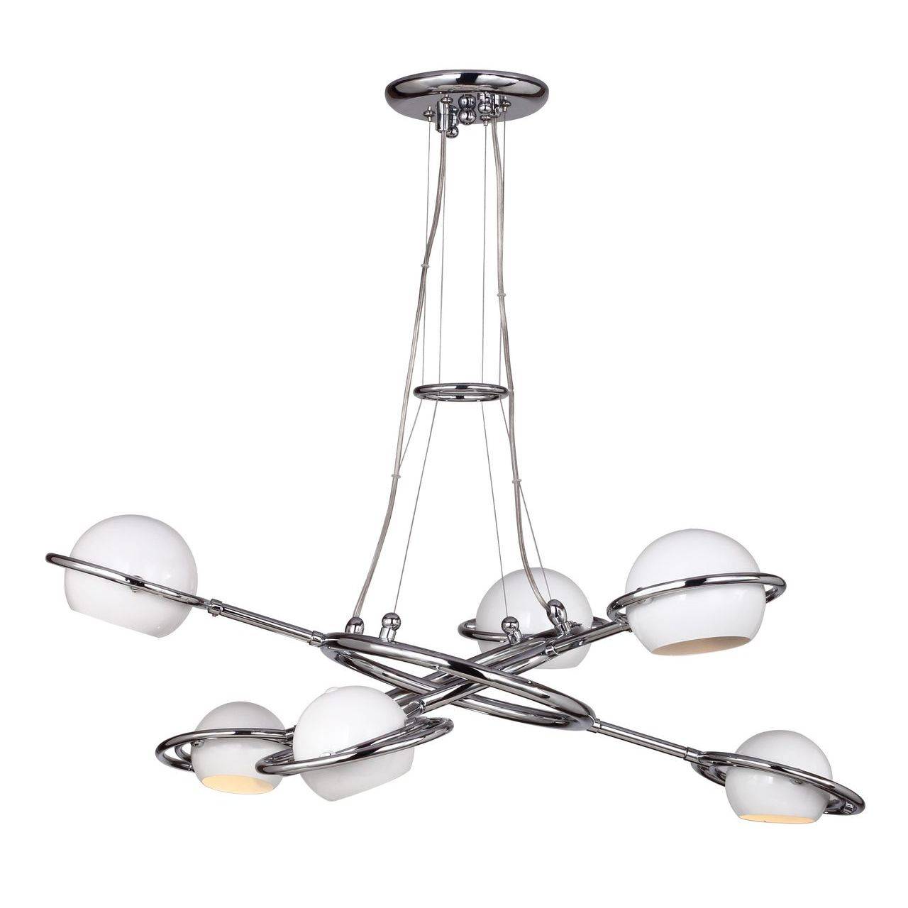 Подвесная люстра Favourite из коллекции Pallino Chrome производства Германия. Люстра 1843-6P имеет цоколь G9, в конструкции используются металлические виды материалов, металлическая арматура цвета хром и 6 белых плафона из материала металл.