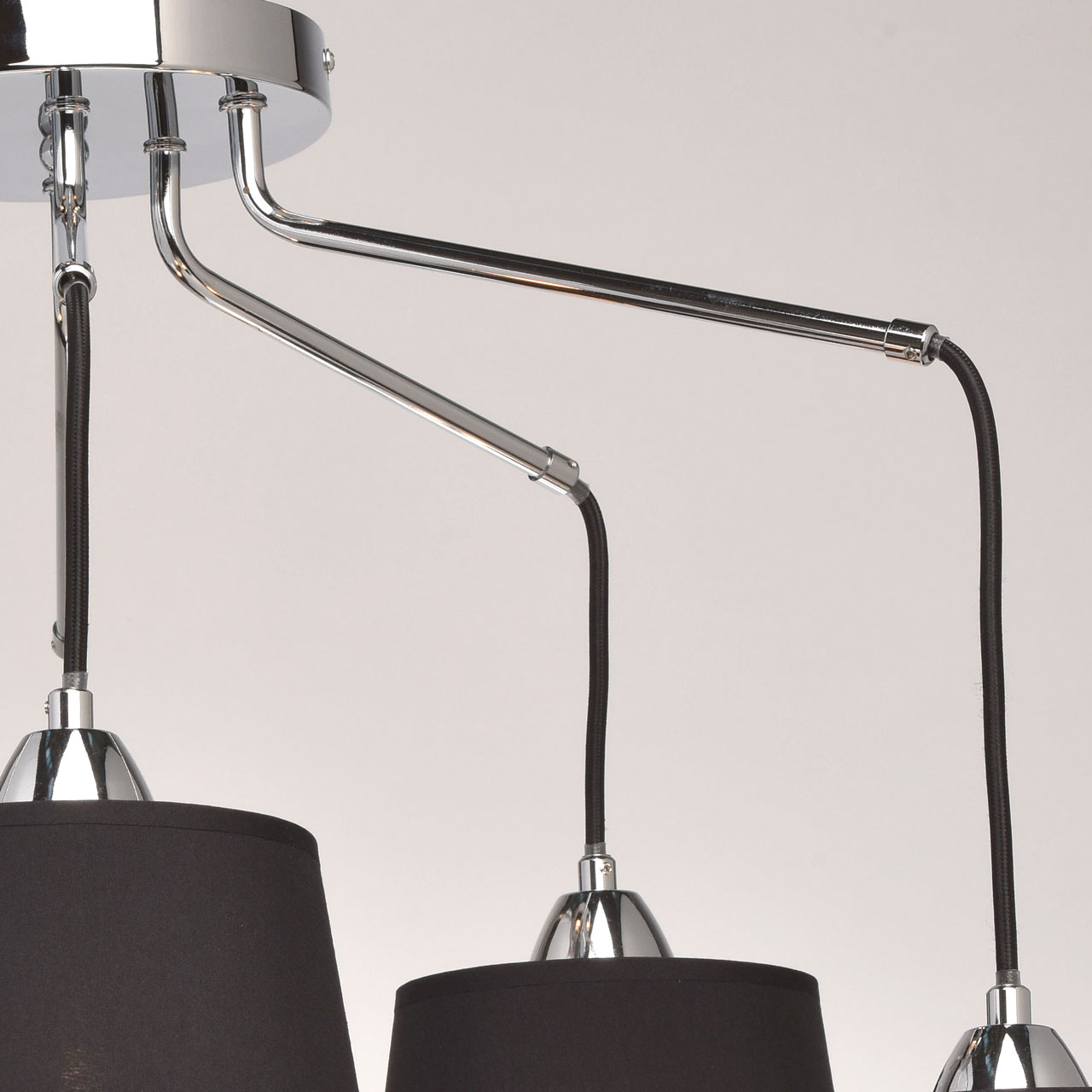 Цвет Черный Виды материалов Текстильные Цвет арматуры Хром Материал арматуры Металл Материал плафонов Ткань Форма плафона Конусный Общая информация