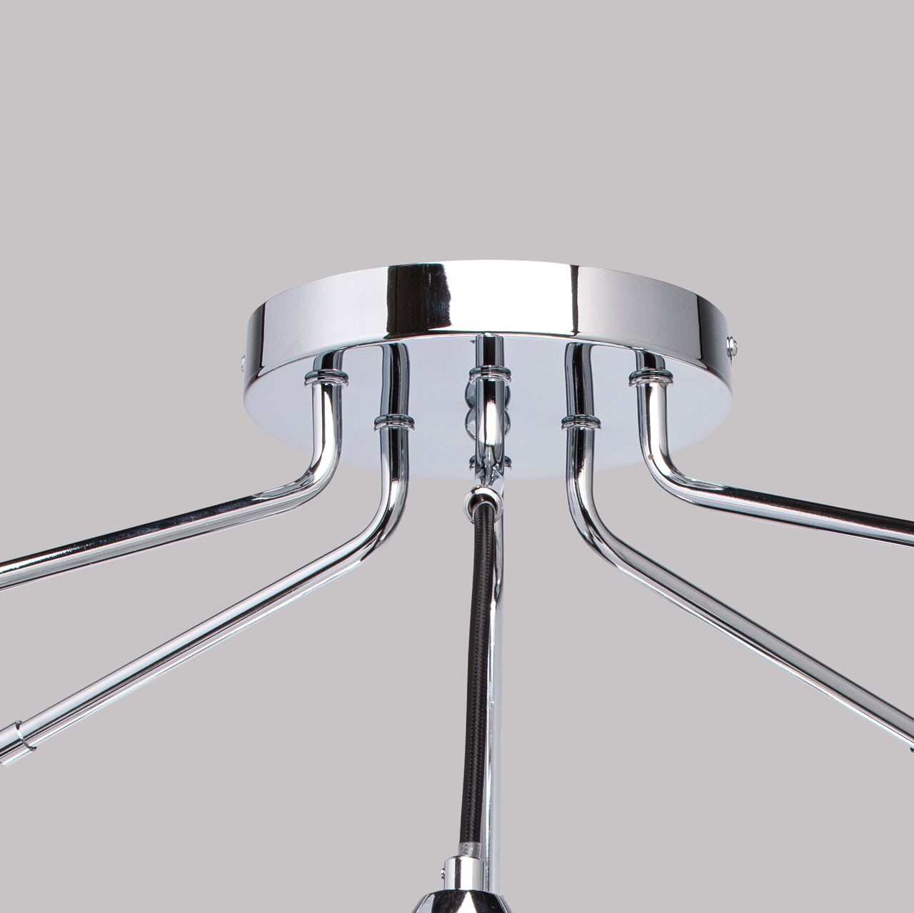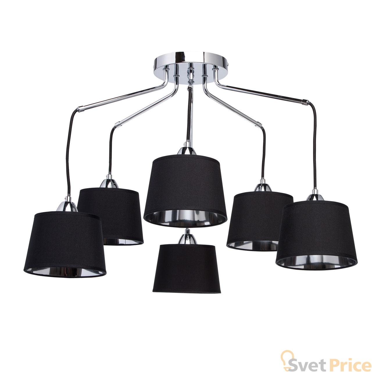 Подвесная люстра MW-LIGHT из коллекции Лацио 4 производства Германия. Люстра 103011206 имеет цоколь E27, в конструкции используются текстильные виды материалов, металлическая арматура цвета хром и 6 черных плафона из материала ткань.