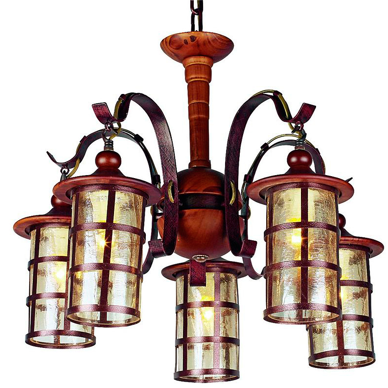 Подвесная люстра Omnilux из коллекции Amelia производства Китай. Люстра OML-58803-05 имеет цоколь E27, в конструкции используются деревянные виды материалов, металлическая арматура бронзового цвета и 5 темных плафона из материала стекло.
