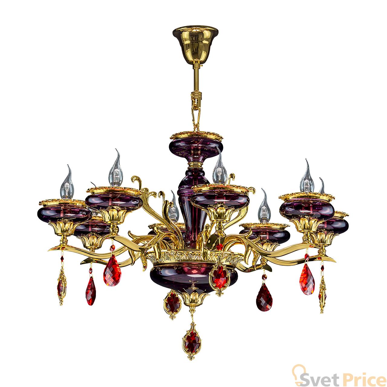 Цвет Фиолетовый Виды материалов Стеклянные Цвет арматуры Золото Материал арматуры Металл Форма плафона Без плафона Лампочки