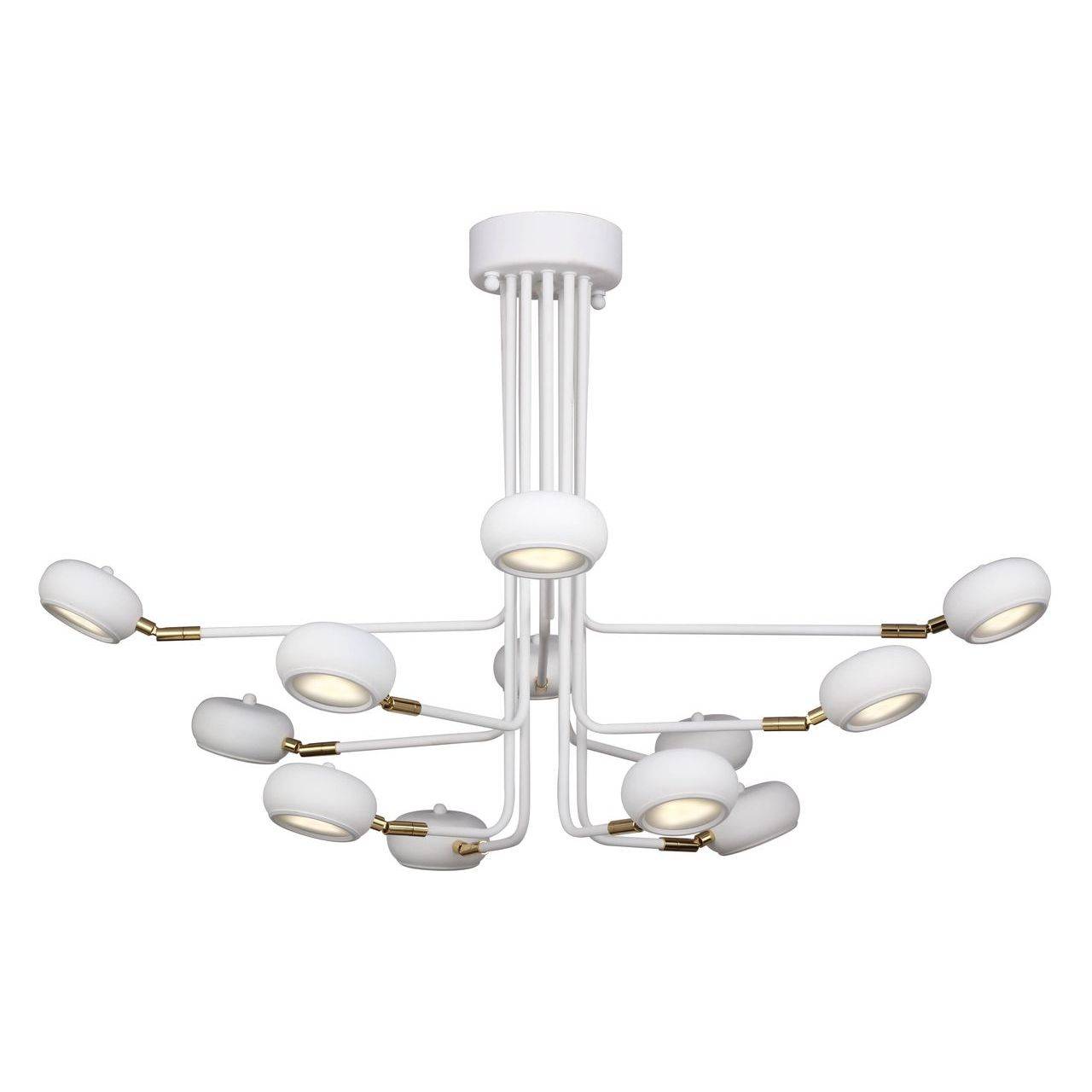 Подвесная люстра Favourite из коллекции Ellisse White производства Германия. Люстра 1748-12U имеет цоколь LED, в конструкции используются пластиковые виды материалов, металлическая арматура золотого цвета и 12 белых плафона из материала акрил.