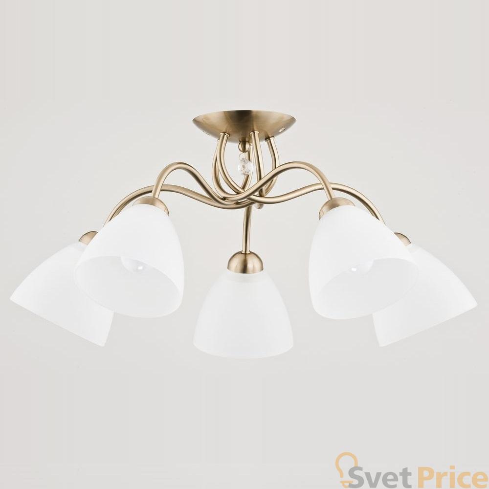 Потолочная люстра Alfa из коллекции Amarillo Patyna производства Польша. Люстра 23755 имеет цоколь E27, в конструкции используются стеклянные виды материалов, металлическая арматура золотого цвета и 5 белых плафона из материала стекло.