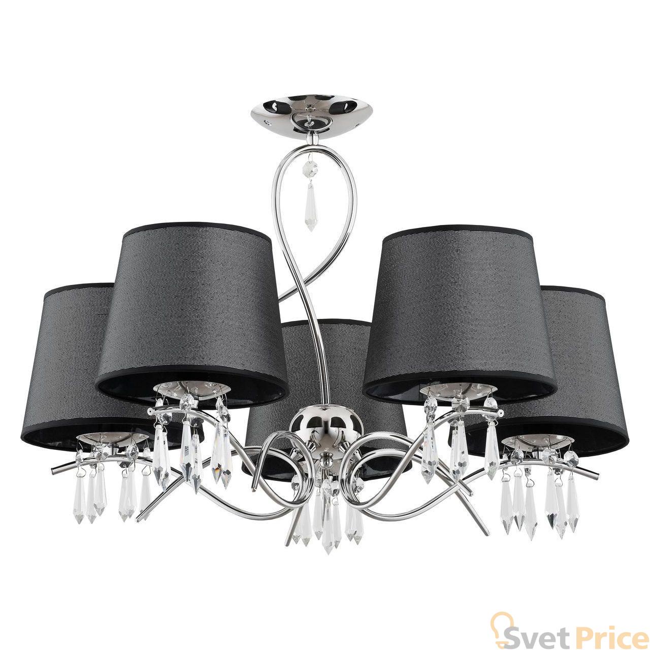 Потолочная люстра Alfa из коллекции Baron производства Польша. Люстра 11485 имеет цоколь E14, в конструкции используются текстильные виды материалов, металлическая арматура цвета хром и 5 черных плафона из материала ткань.