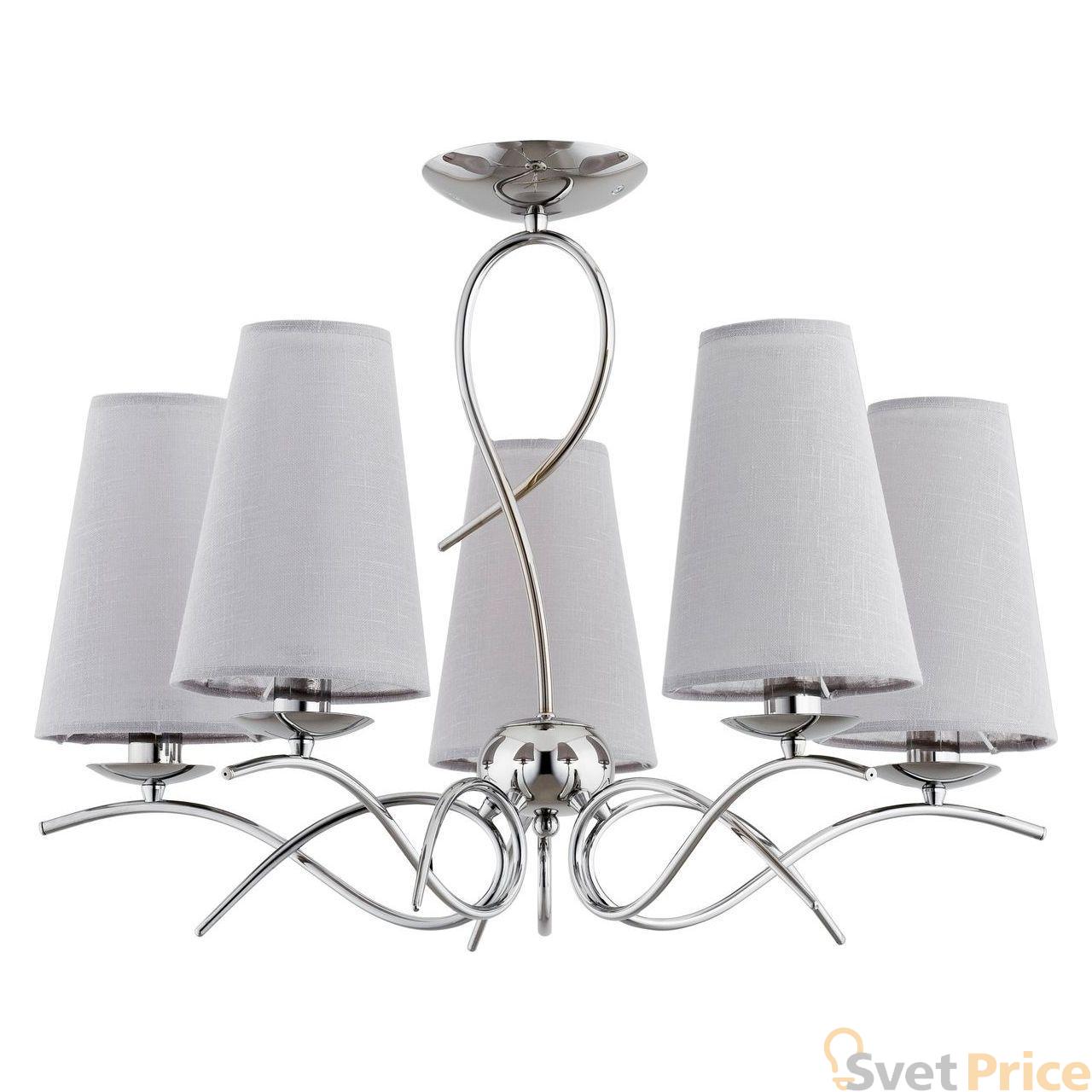 Потолочная люстра Alfa из коллекции Etna производства Польша. Люстра 21235 имеет цоколь E14, в конструкции используются текстильные виды материалов, металлическая арматура цвета хром и 5 серых плафона из материала ткань.