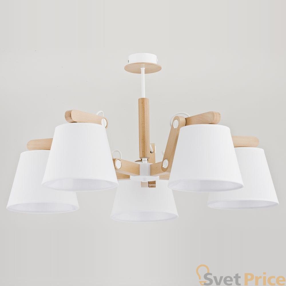 Потолочная люстра Alfa из коллекции Joga White R производства Польша. Люстра 23975 имеет цоколь E27, в конструкции используются деревянные виды материалов, металлическая арматура бежевого цвета и 5 белых плафона из материала ткань.