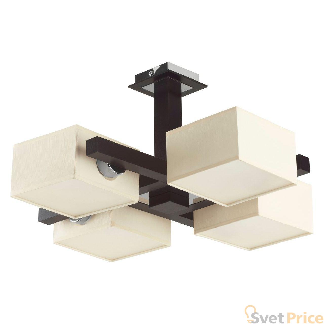 Потолочная люстра Alfa из коллекции Junior Ecru производства Польша. Люстра 14644 имеет цоколь E14, в конструкции используются текстильные виды материалов, металлическая арматура коричневого цвета и 4 бежевых плафона из материала ткань.